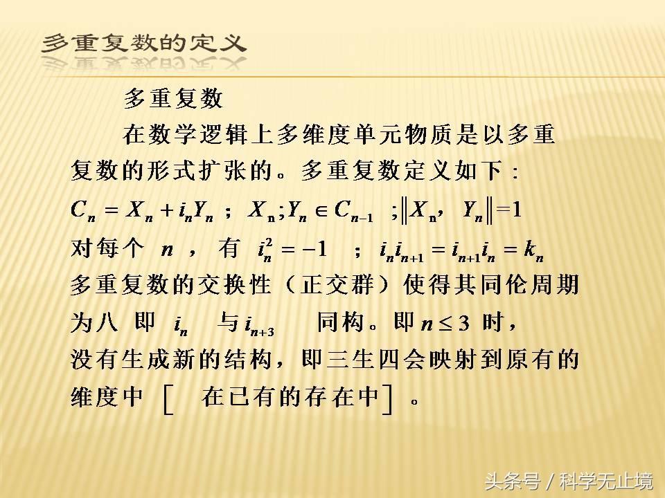 所以数学逻辑当维度大于4时,可以用多重复数描述一个事物的性质。当然性质如果接近是可能合并的。