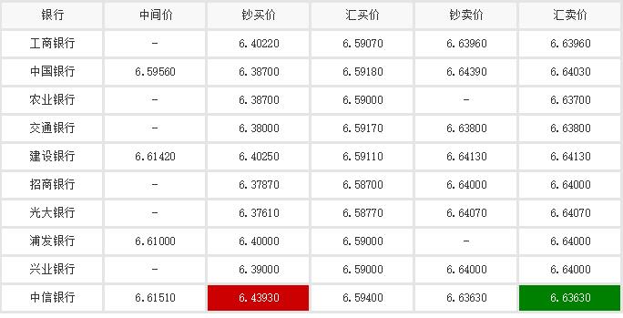 购汇(人民币换日元):去 中信银行 最划算,最低 6.6363 人民币 就可兑换 100 日元