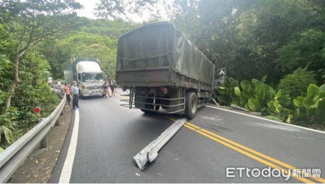 【环球网综合报道 记者赵友平】台湾 " 中央社 "、中时新闻网等台媒 18 日消息称,台湾一辆军用卡车今天(18 日)从宜兰往新北方向行驶,在北宜公路上突然失控自撞护栏,横在路中,事故路段双向交通管制,仅开放摩托车通行,约下午 3 时恢复正常通行。