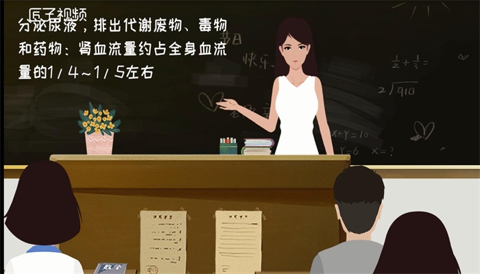 2、分泌尿液,排出代谢废物、毒物和药物:肾血流量约占全身血流量的1/4~1/5左右,肾小球滤液每分钟约生成120mL,一天总滤液量约170~180L。