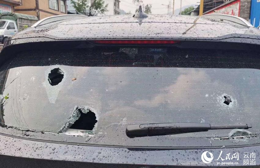 云南省屏边县遭巨型冰雹突袭 车窗玻璃完全碎裂