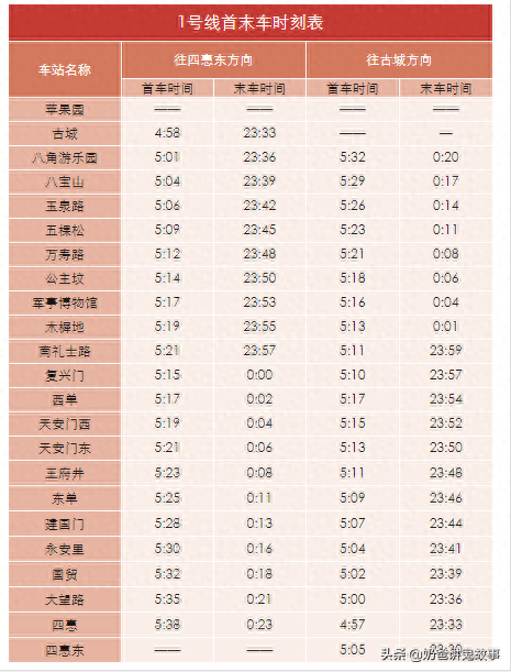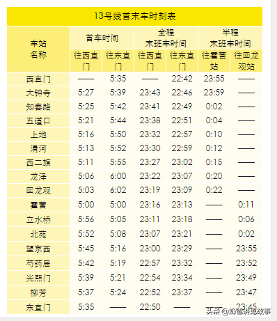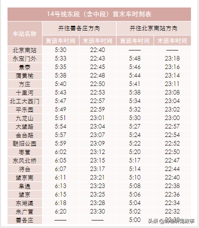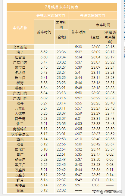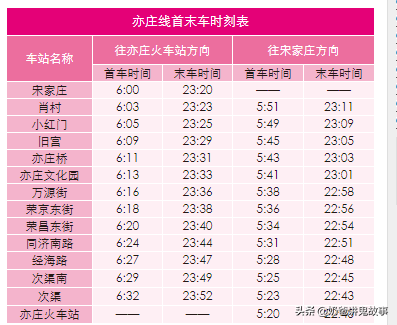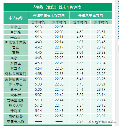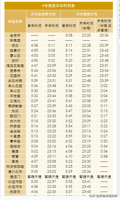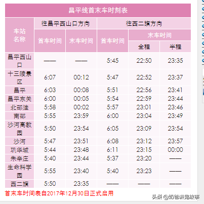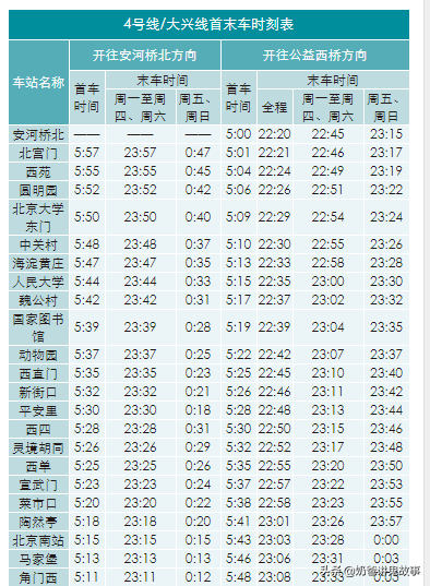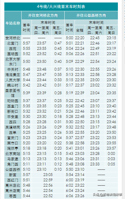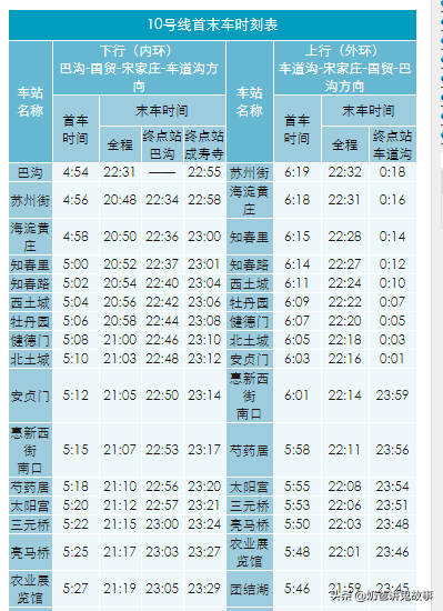北京市地铁图及首末班时刻表