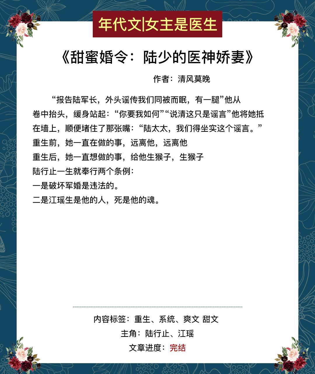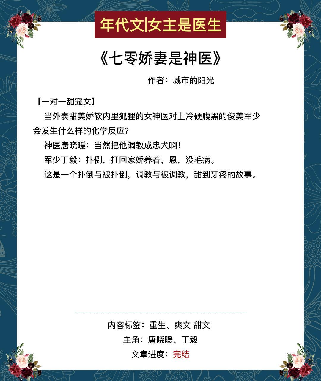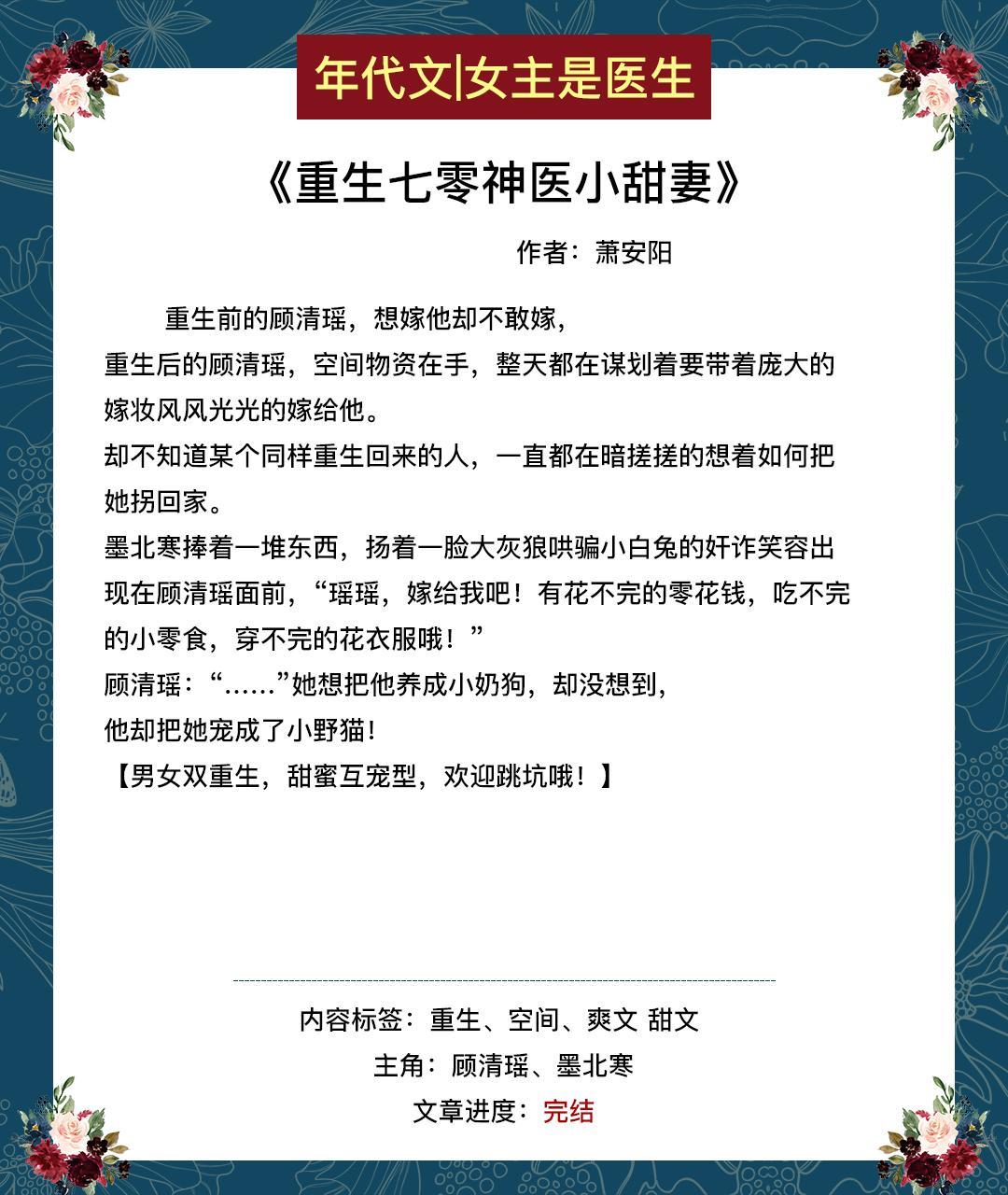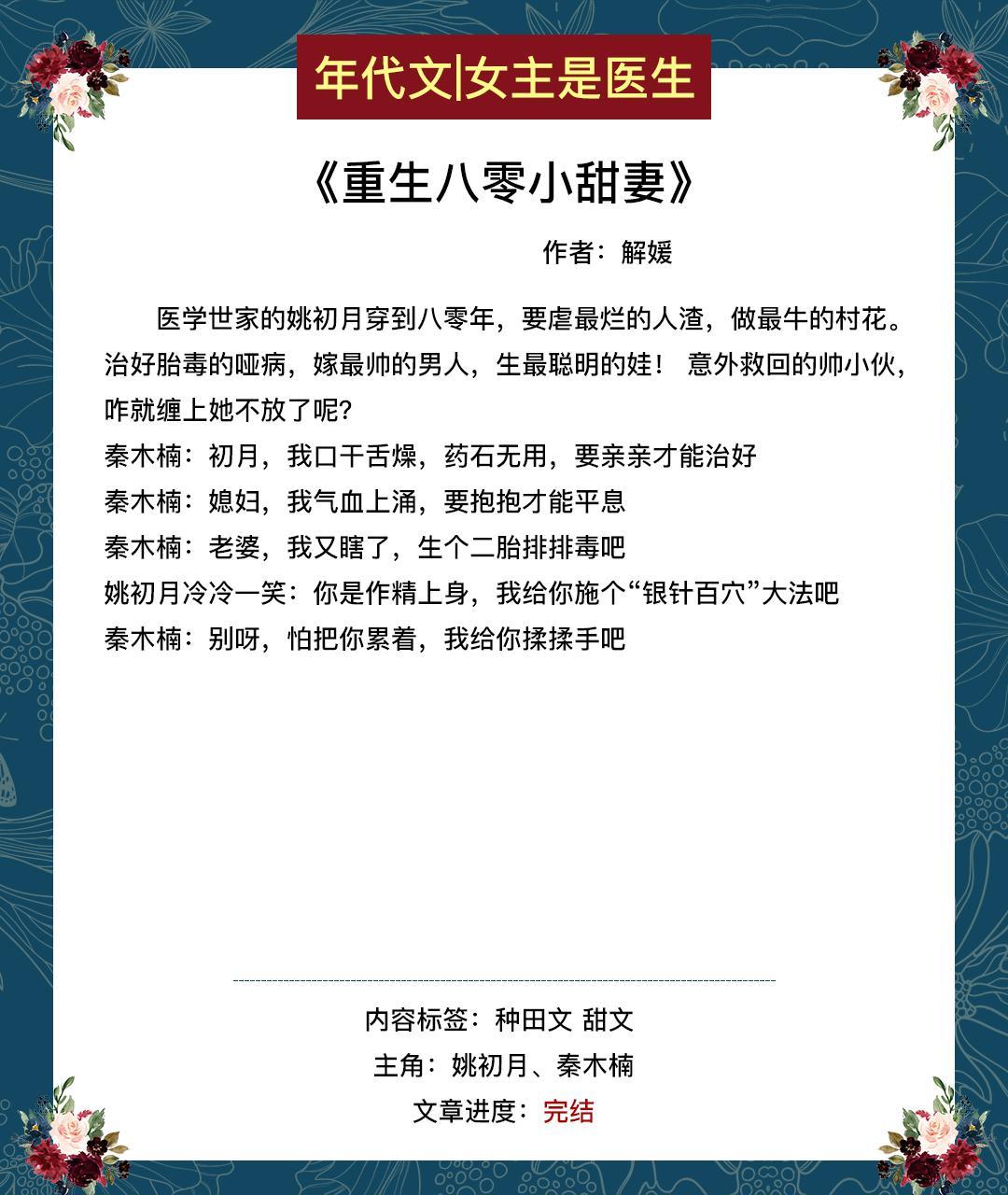 这期给大家推女主是医生的年代文或带医神系统,或带药田空间。