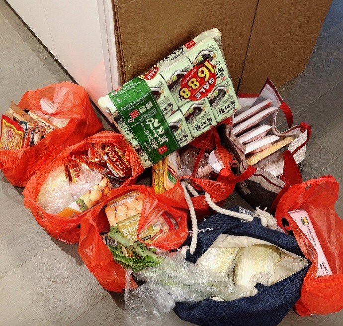 可以看到,窦宝宝出门一趟也是购买了大量的食物,为自己宅在家里做准备。