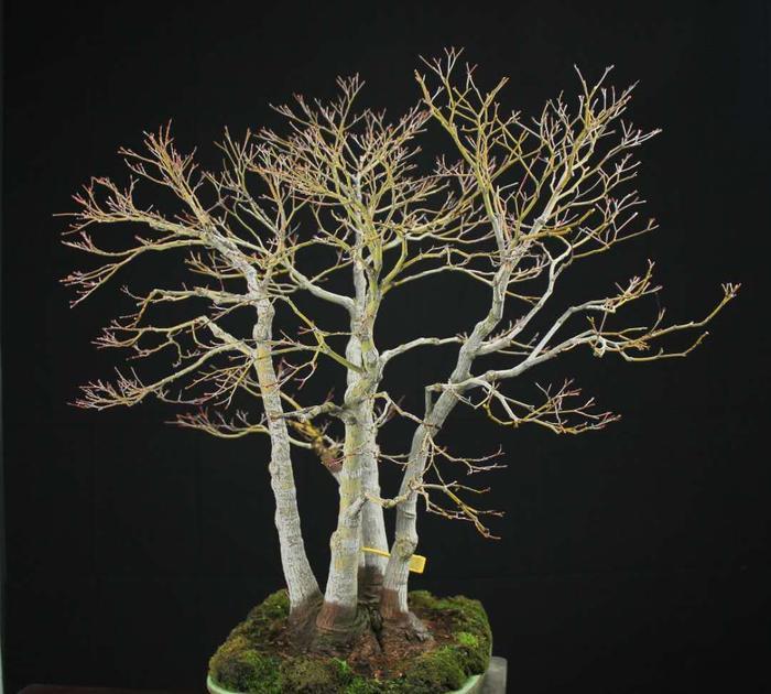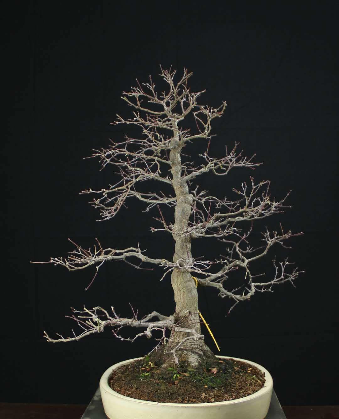 日本山红叶(红枫)年功到位,主干老辣,枝干延伸有力,满树牙尖富含生机,立秋后,枫树会又开始重新长出新叶,山红叶的季节性非常明显,冬季观枝干也是非常有趣,一派萧瑟之感。