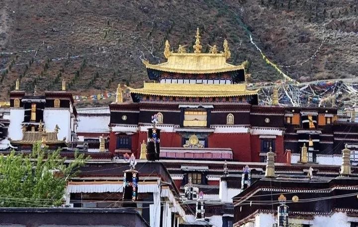 第五点区别是寺院的建筑不同,汉传佛教寺院外墙的颜色为宫廷御用的黄色,大殿为人字形两面坡屋顶,上铺青瓦、琉璃瓦或鎏金铜瓦。藏地寺院建筑金顶是主要殿堂的标志,