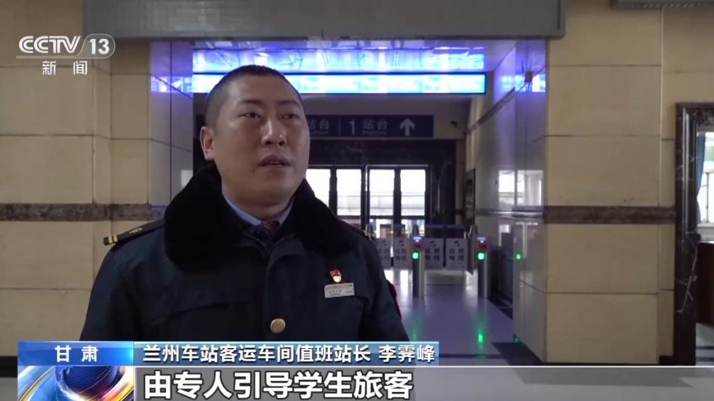 兰州车站客运车间值班站长 李霁峰:我们专门开设了售票专口,由专人引导学生旅客,开设专门的学生资质核验专口,专人对学生旅客进行专门的服务。同时也开辟了绿色通道,方便我们的学生团体旅客快速有序检票进站上车。