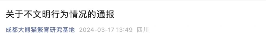 成都大熊猫繁育研究基地 17 日发布关于不文明行为情况的通报,全文如下: