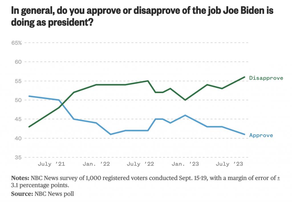 根据 NBC 新闻于 9 月 15 日至 19 日期间进行的一项新民调,四分之三的选民表示他们担心总统拜登的年龄和精神健康状况,与此同时,近三分之二的选民担心前总统特朗普面临的多项审判。