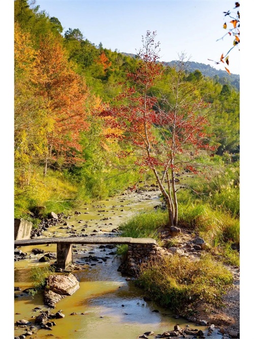11.丹枫廊桥:小桥流水枫叶,秋天的枫叶和溪流相得益彰