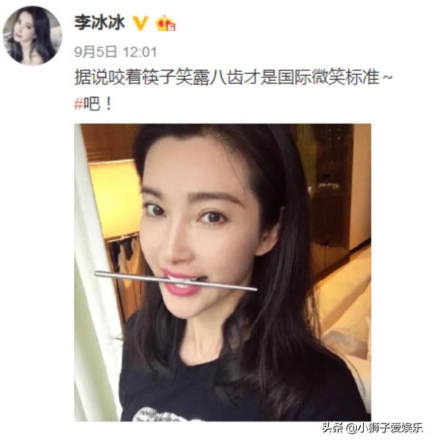 2016年,李冰冰在微博上亲身示范过咬筷子练习八齿微笑,引起很多网友的模仿。有些培训机构还新增了八齿微笑课程,很多小女孩报名参加。时代的风说变就变,什么流行人就追逐什么。