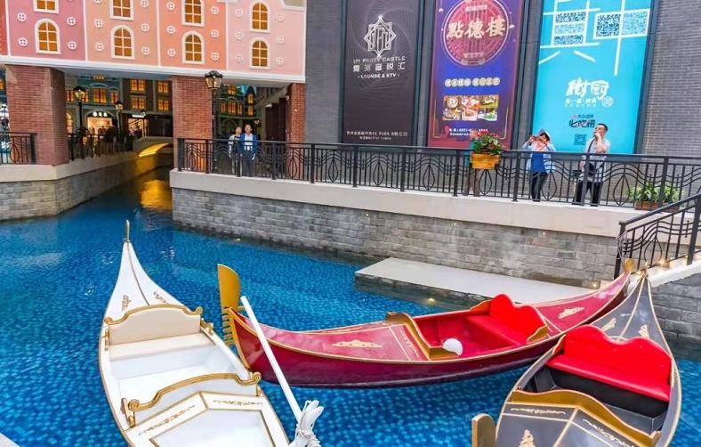2、其次就是位于国际会议中心站旁俗称“贵阳版威尼斯”地下商场的中天CC PARK B馆,你可以和TA一起漫步于异域风情的运河上,感受那份独有的甜蜜韵味;中天CC PARK B馆以别具一格的异国风情吸引了不少市民围观打卡,热度也不输中山西路。
