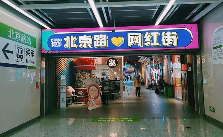 3、再次就属北京路站了,和其他网红地铁站不一样的是,北京路站以魔幻灯光秀和高科技互动设备为一体,打造了新型潮流地铁文化吸引了不少市民的眼球,来次打卡的市民络绎不绝。