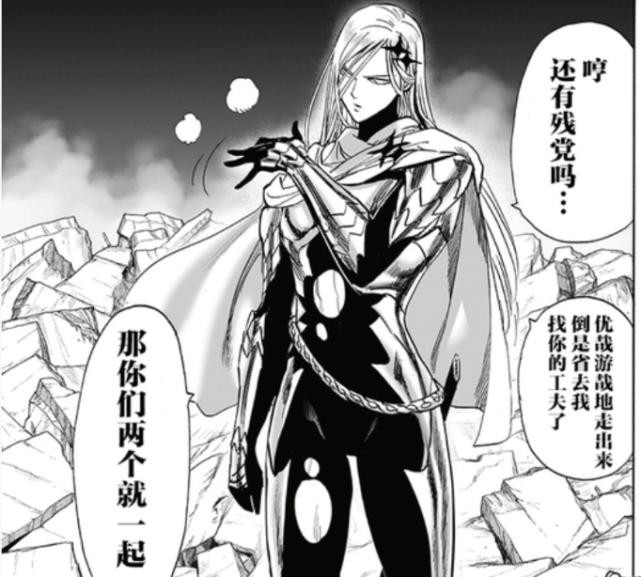 第三,就是其他角色的侧面描写,比如龙级怪人疾风和烈火都认为闪光是S级英雄中的最强者。