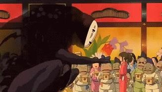 为什么脸脸对千寻一直这么偏爱呢?因为千寻的善良?勇敢?友好?或许就是这些别人都缺少的人性吧!从洗浴牌子开始,小千需要帮助的时候,无脸男总是会出现,然后默默的功成身退,简直就是守护神的存在了!