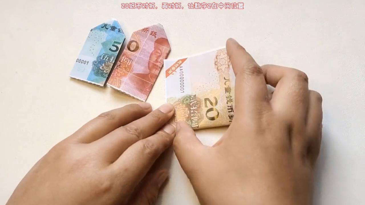 ·50元儿童纸币,折叠一下,让数字5靠在边上。