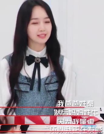 爸爸姓秦,妈妈姓牛,然后她属虎,所以她正在发威,所以叫秦牛正威。