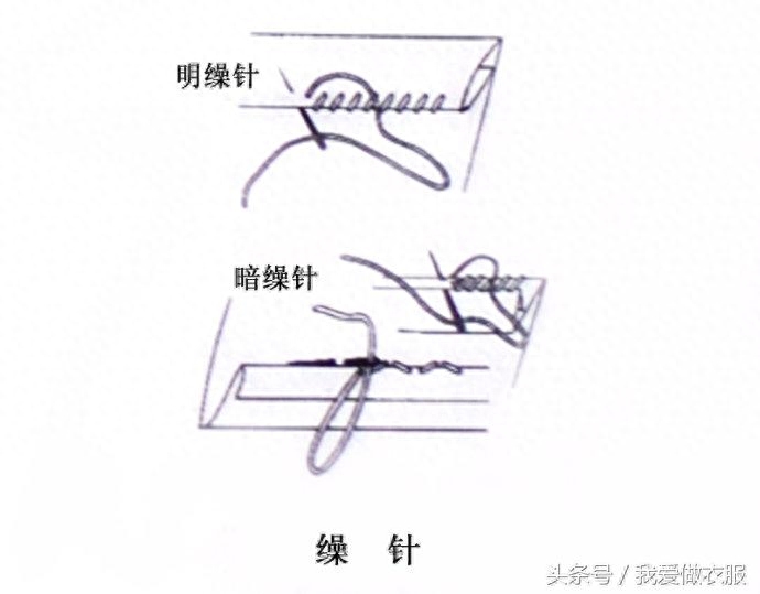 暗缲:又称暗针。正面不露针迹,亦有正反面均不见针迹的,它同样用于服装的贴边等处。