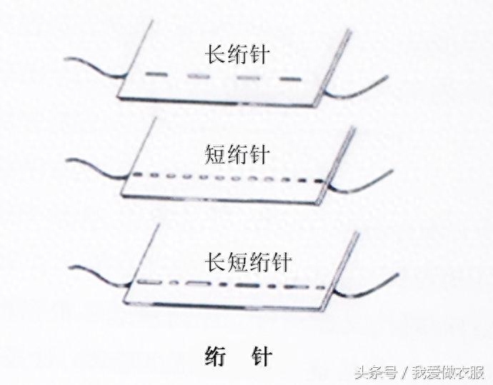 短绗针:是固定布料等用的基本针法。针法亦由右至左,以l厘米2至4针(通常2.5针)的针距运针。