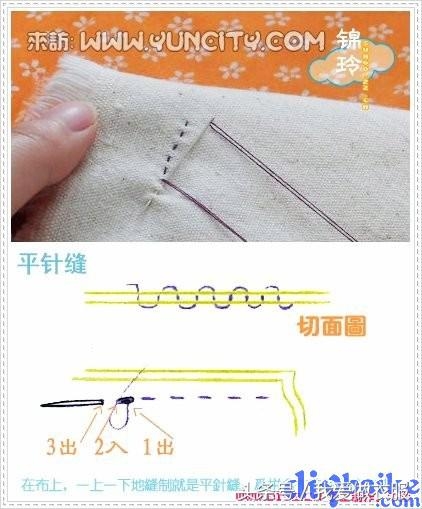 已保存后一起拉紧线头,一般是连缝两三针才拉出。适用于布块拼接,平针的针脚距离一般保持在0.5厘米左右。