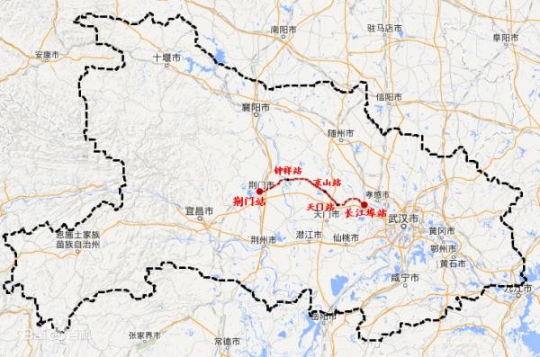 长荆铁路各站点:荆门站、钟祥站、京山站、天门站、长江埠站(来源:湖北发布微信号)