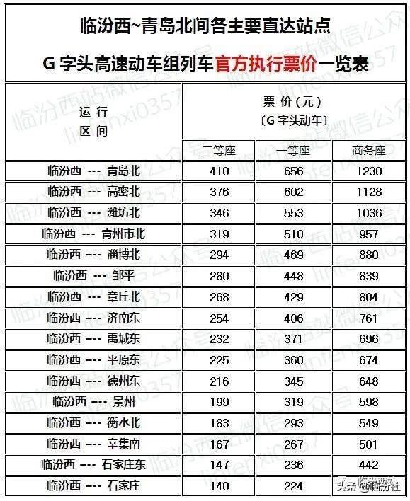 青岛北、济南东乘G字头高速动车可直达临汾西