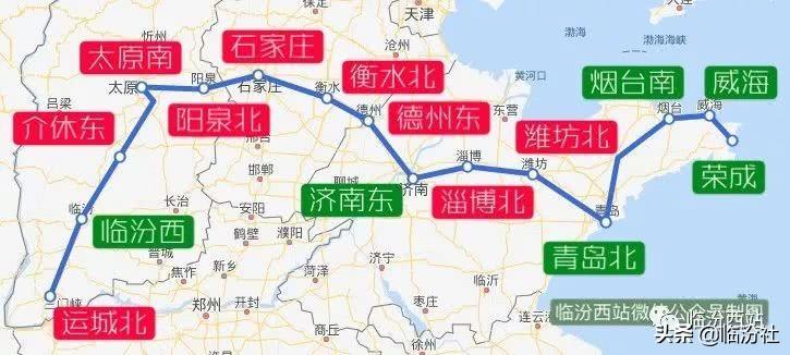 闻喜西 襄汾西 临汾西 霍州东 介休东 太原南 阳泉北 石家庄 石家庄东 辛集南 衡水北 景州 德州东 平原东 禹城东 济南东 章丘北 淄博北 青州市北 潍坊北 高密北