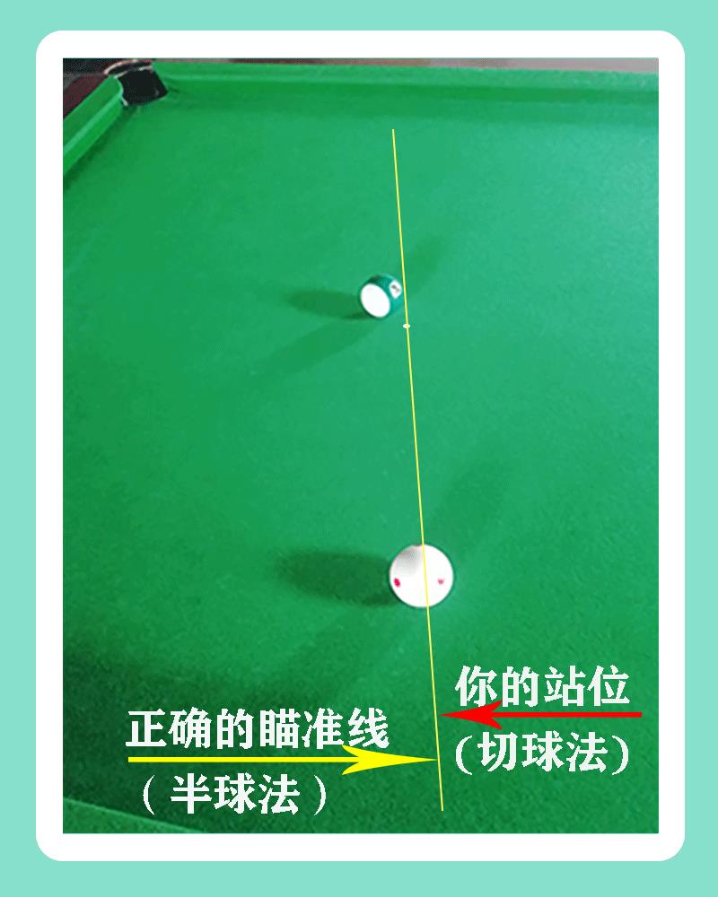 首先说看点,我重点提出,请强迫自己暂时抛弃其他一切瞄准方式,特别是切球法和假象球法,只用半球法,这里面是有很严重的原因的,我不去花太多文字解释,很多人没有练出达标的准度就是原因,你想少走弯路,就跟着我不花冤枉时间。