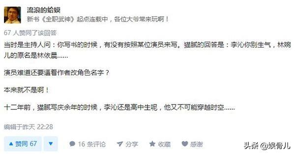 事实上,猫腻在阅文年度IP盛典现场,当众表示林依晨是自己创作《庆余年》时候的“缪斯女神”,书中的女主角林婉儿就叫林依晨,并非李沁。
