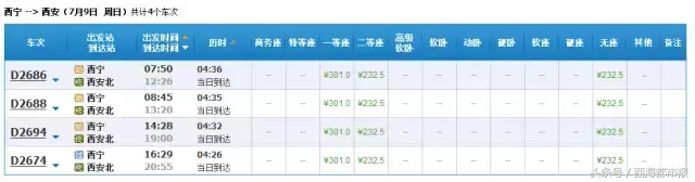 西宁到西安北只要4小时36分钟,一等座票价为301.元,二等座票价为232.5元