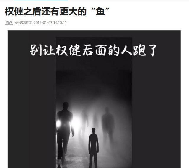 况且权健并不是中国最大的,还有比权健更大的。对于这个问题,央视新闻网专门发文称,权健身后还有更大的“鱼”,所以不要让权健背后的人逃脱。