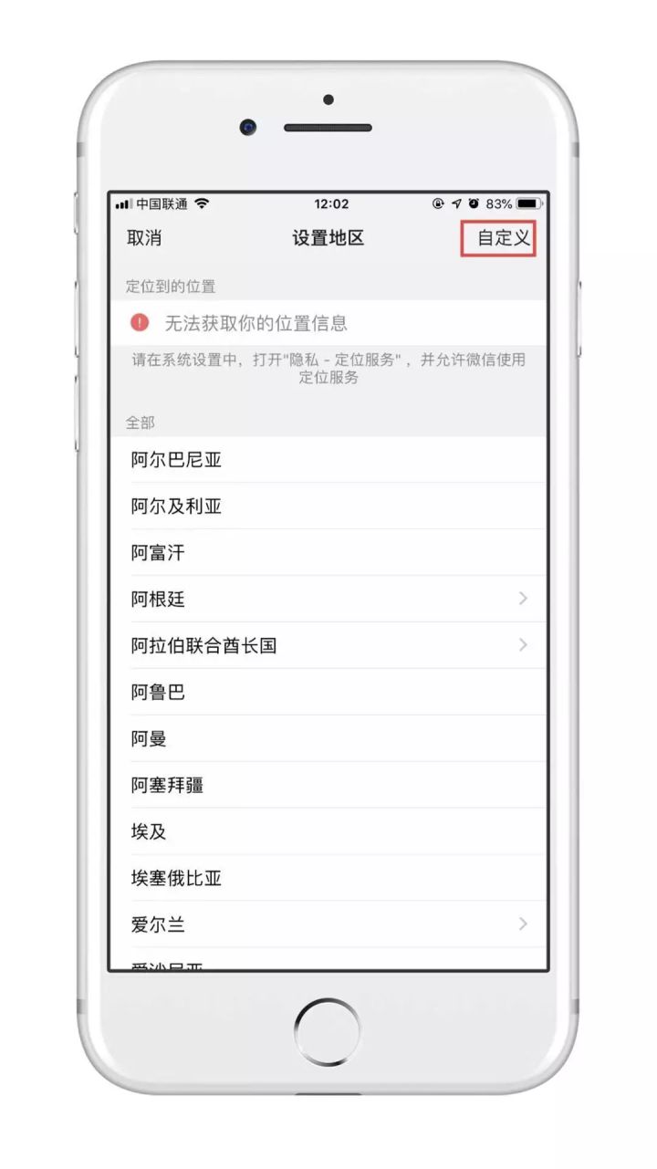 2.登录自己的微信账号,在【我的】然后点头像,就是平时修改微信地区这里,多了一个【自定义】