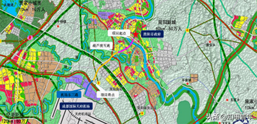 据悉,在8.84公里的简阳空港大道上,全线设置桥梁主线桥7座,全长2400米左右,分别为简州大桥、马家湾大桥、跨西内环线大桥(预留匝道)、G76分离式立交桥、绛溪河大桥、成渝高铁下穿桥、顺河大桥7座。按照规划,建成后的简阳空港大道项目将作为未来城市的中心轴线及景观廊道。