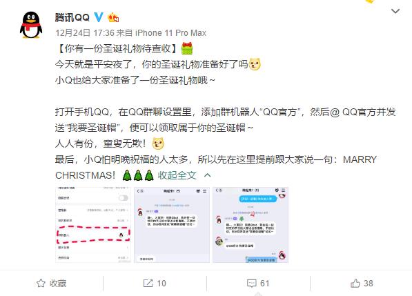 QQ也给所有用户准备了圣诞礼物——圣诞帽!