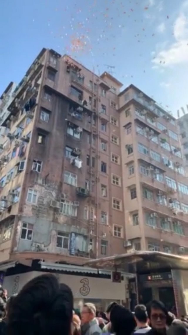 中国人常用 " 天上掉馅饼 " 来形容意想不到的好事,就在今天 ( 12 月 15 日 ) 的香港深水埗街头,真的出现了现金 " 从天而降 " 的奇景,引得路人指天高呼:" 钱来啦 !"