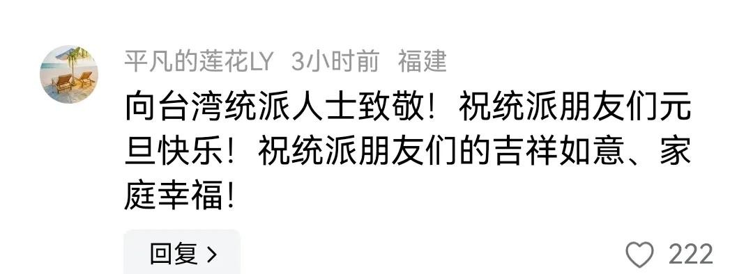 一位来自福建的网友在评论区向台湾的统派人士表达了自己的敬意,并且送上了深深的祝福。