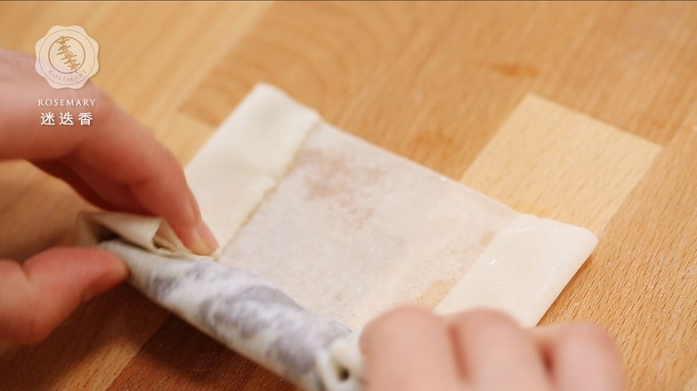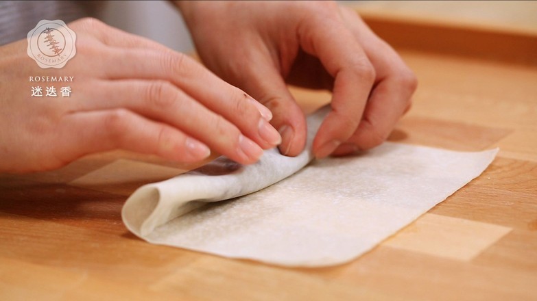4.在春卷皮末端涂一点清水,卷起就做好了
