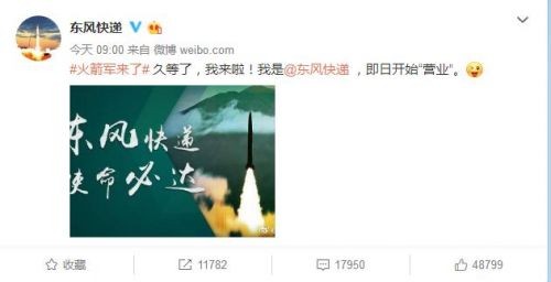 东风快递即日开始营业!中国最强快递火箭军首条微博引关注