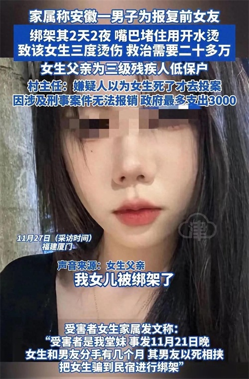 这是一起令人发指的恶性事件!一个 20 岁的女孩,本应处在人生最美好的年华,却遭遇了前男友惨无人道的虐待,整整 2 天 2 夜,成为了她一生中无法抹去的噩梦。