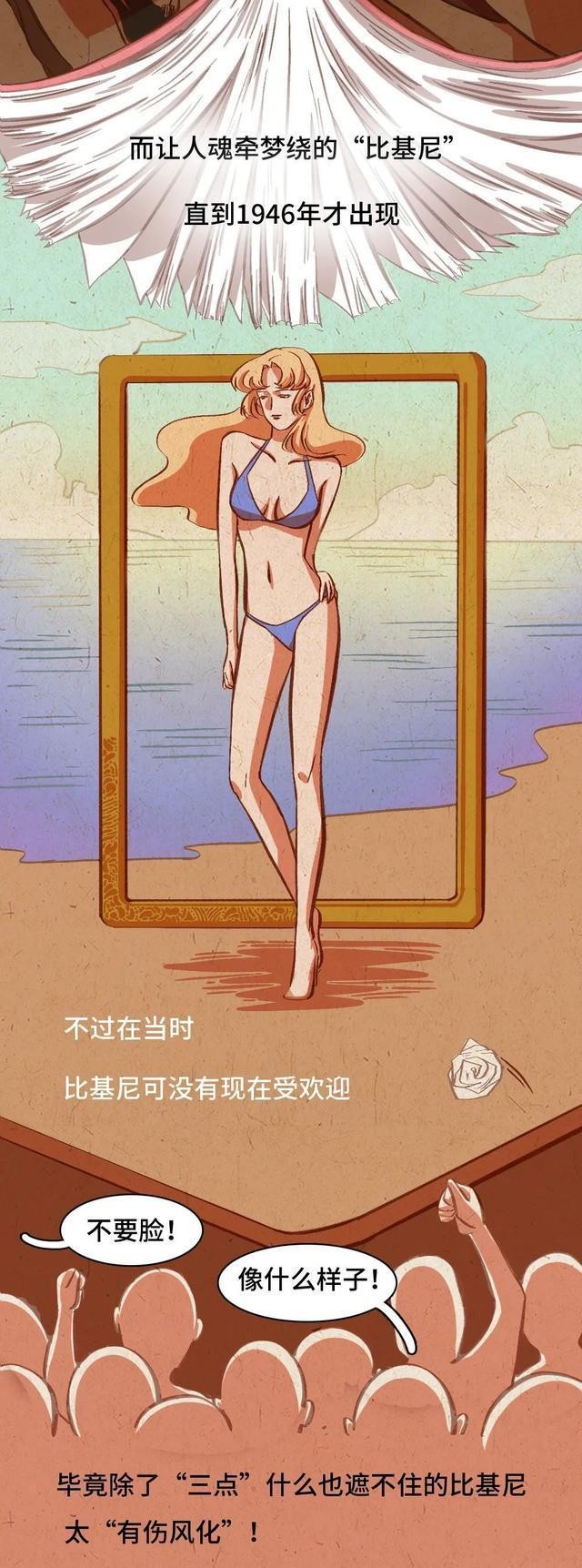 结语:看完这组漫画,相信大家对于比基尼的进化史都有所了解了吧。比基尼现今作为以一种十分流行的泳衣,已经被大众所接受,最能体现人体的雕塑感。