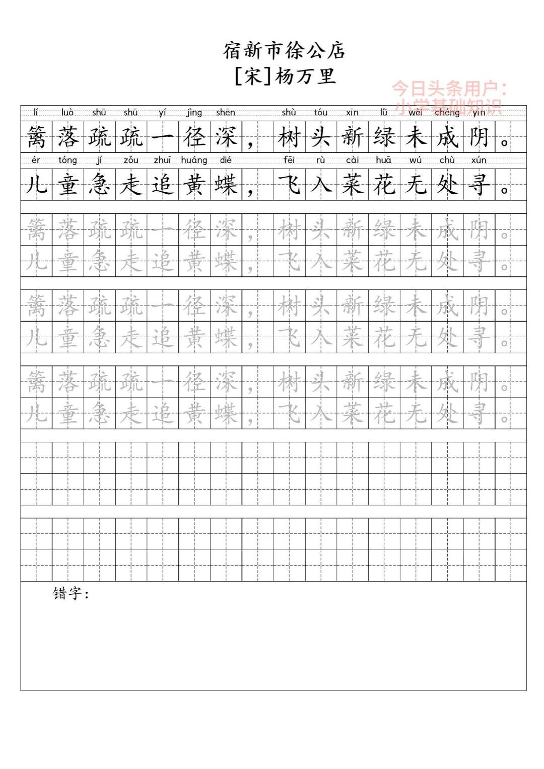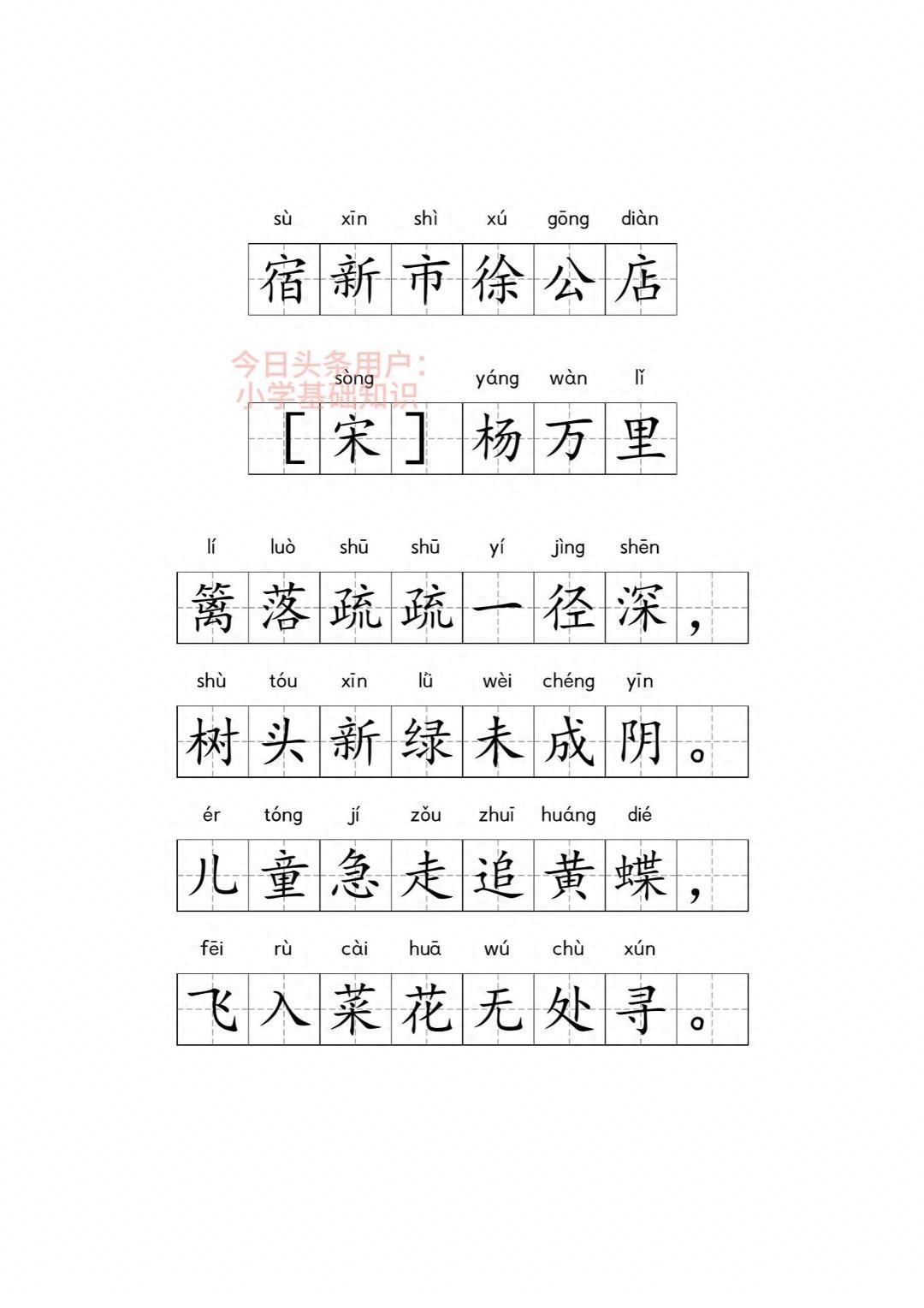《宿新市徐公店》古诗带练字版图片如下:(可打印图片进行练字)