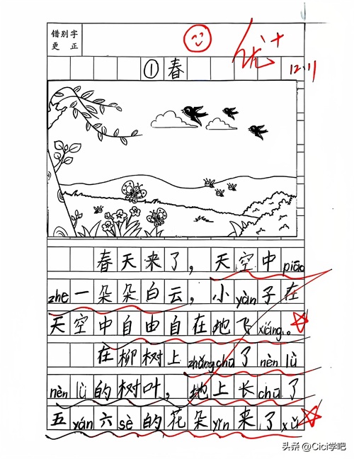 一年级上册春天来了主题看图写话范文二: