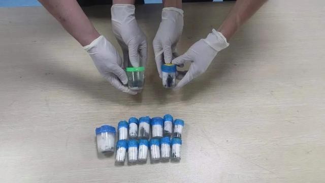 深圳邮局海关关员在对快件开展监管时发现,1票申报为“罗望子糖”的快件包裹机检图像可疑,随即对其开箱查验。经查,该票包裹内有一个白色泡沫箱,箱中装有用零食包装袋包装的塑料盒,其内装有蜘蛛15只。