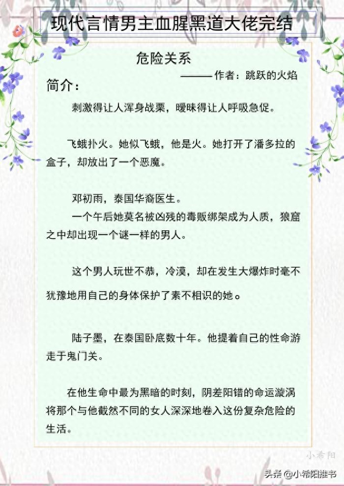 推荐三本现代言情黑道文,男主黑道大佬,一地之王,放下自己的地位,与女主之间的爱情纠缠。