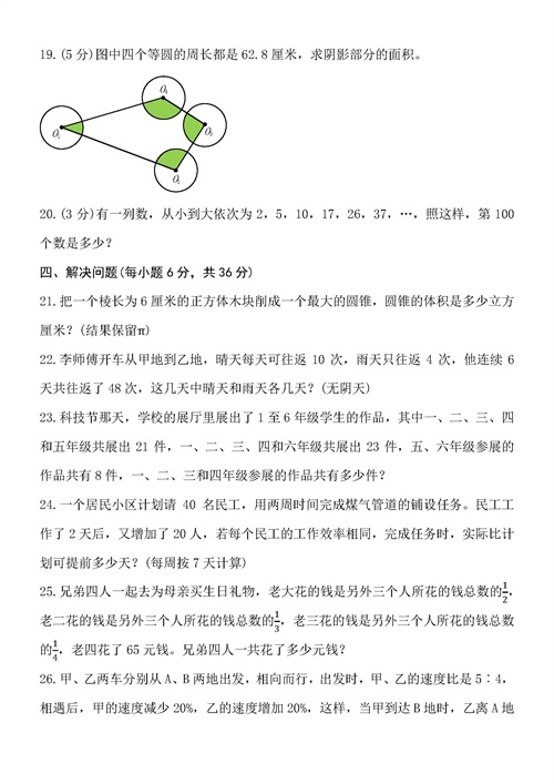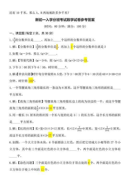 今日分享一套某附中新初一入学分班考试数学试卷,本号作答,供七年级准新生参考练习。