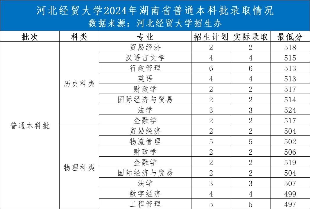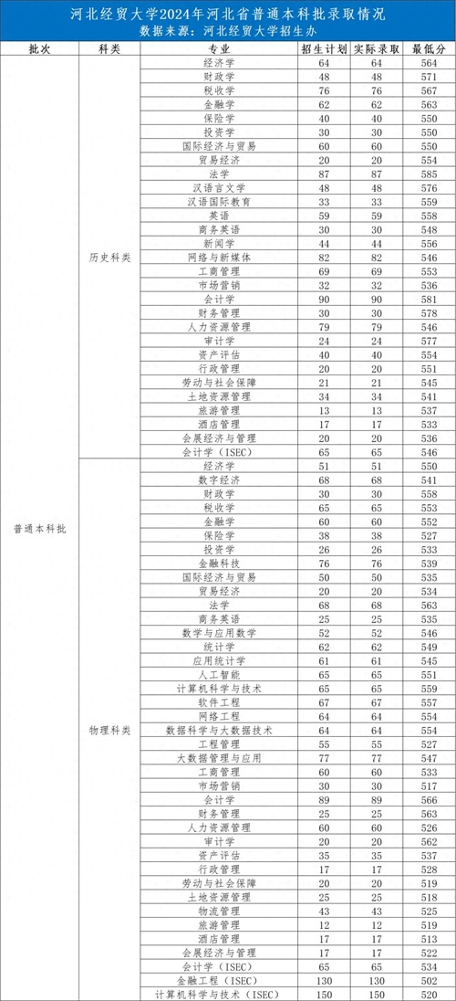 河北经贸大学2024年录取分数线