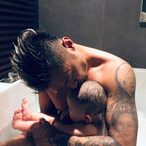 余文乐裸上身抱儿子花臂瞩目 亲吻脑袋尽显温柔