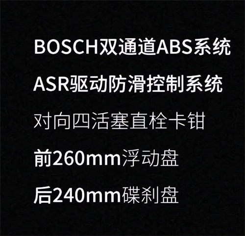 安全方面:比亚乔X7采用了前后盘式制动系统,制动效果显著,能够有效保障驾驶安全。同时,车辆还配备有ABS防抱死功能,进一步提高了刹车性能。