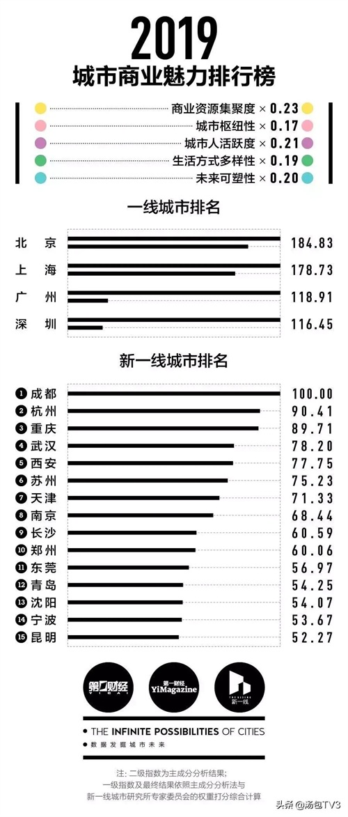 第一财经·新一线城市研究所制作出了《城市商业魅力排行榜》。