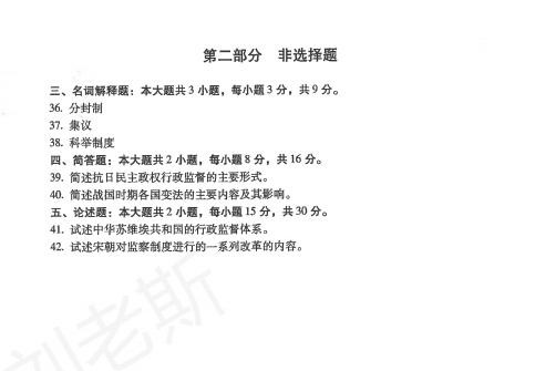 2024年10月自考00322《中国行政史》真题和标准答案